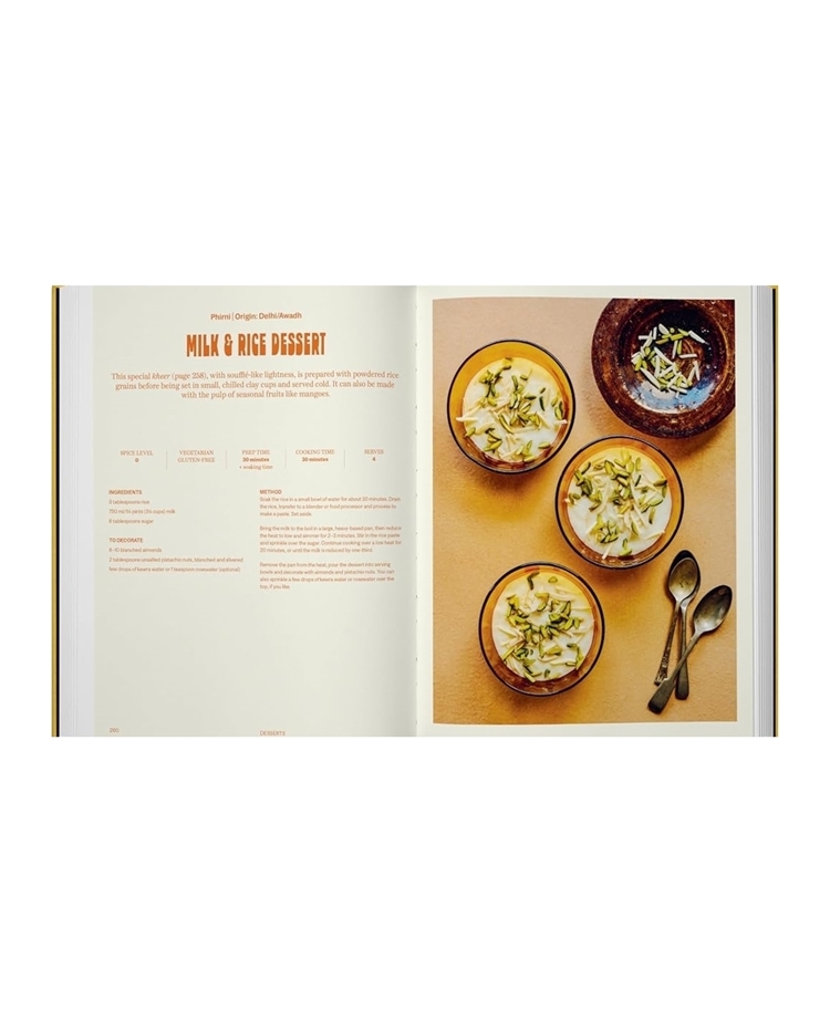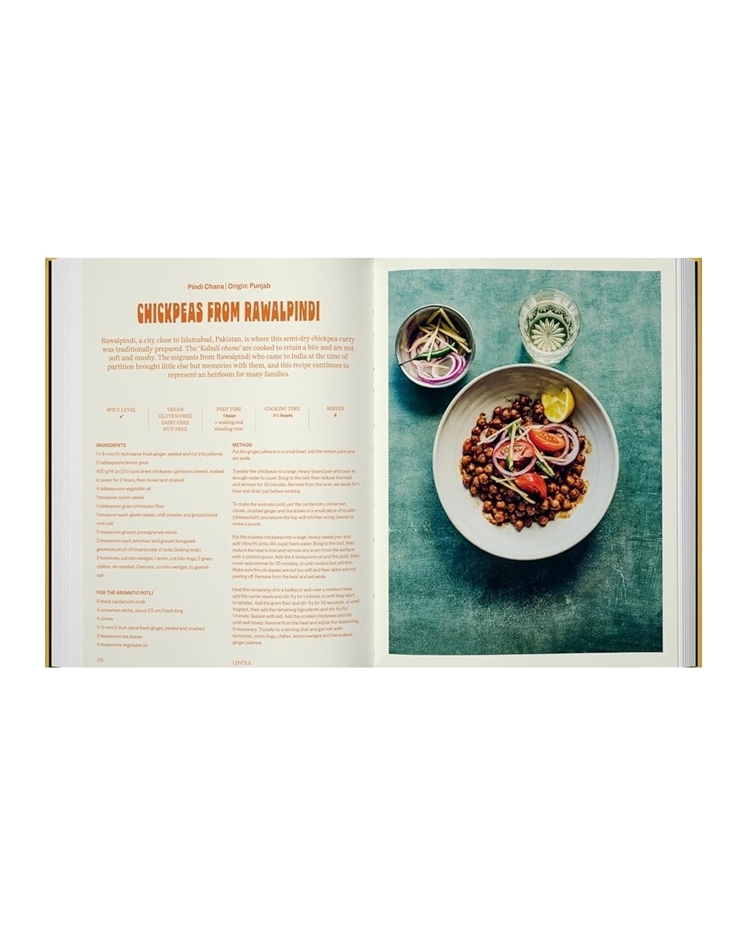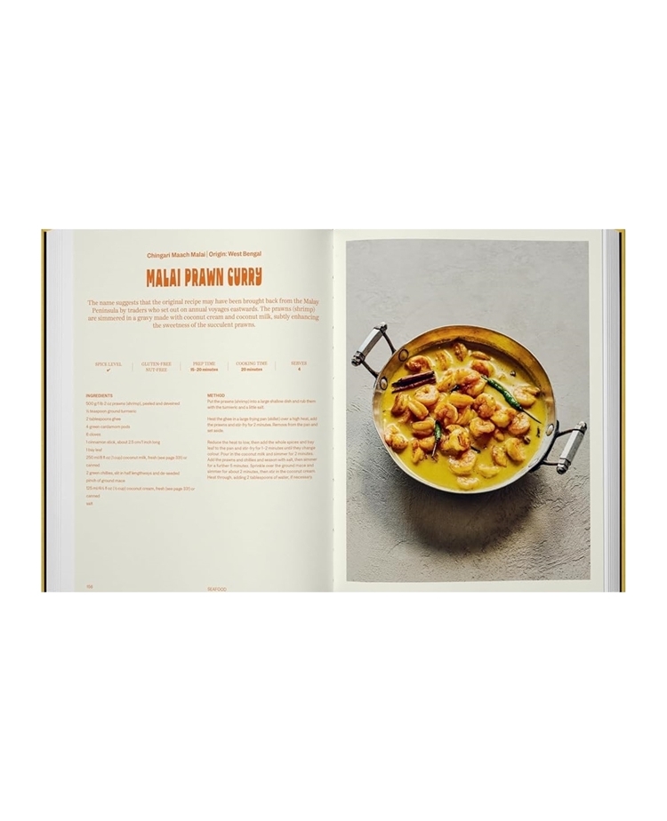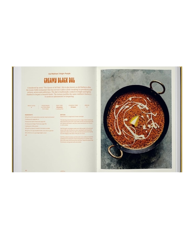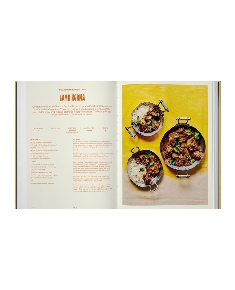 Az ismert és közkedvelt fogások, mint a Butter Chicken, a Roghanjosh és a Dal Makhani, olyan hagyományosabb és különlegesebb ételek mellett szerepelnek, mint például a Hyderabadi Dum ki Biryani és a Gucchi Pulau. A könyvben megtalálhatók az ikonikus receptek közérthető, otthon is elkészíthető változatai is, mint a samosa, pakora, dosa és chapati, valamint számos chutney és italrecept.