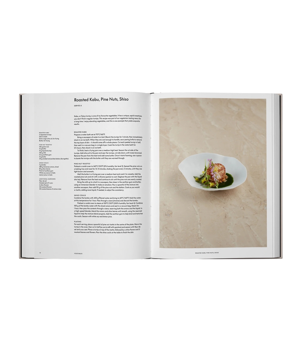 Maga a könyv egy kivételes dizájntárgy, feltűnő borítóval és az étterem sajátos esztétikáját tükröző színvilággal. A fényképek nemcsak a kész tányérokat ragadják meg – feltárják a folyamatot, a szándékot és a konyha csendes koreográfiáját.