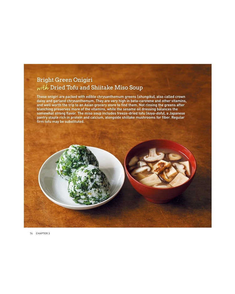 Gyönyörű fotókkal gazdagon illusztrálva a könyv bemutatja két klasszikus japán házias fogás végtelen lehetőségeit. Megumi Fujii minden receptnél kiemeli az alapanyagok táplálkozási előnyeit, és számos módot mutat be arra is, hogyan használhatók fel az olyan egészséges japán szuperélelmiszerek, mint a tengeri alga és a miso, amelyek ma már szinte mindenhol elérhetők.