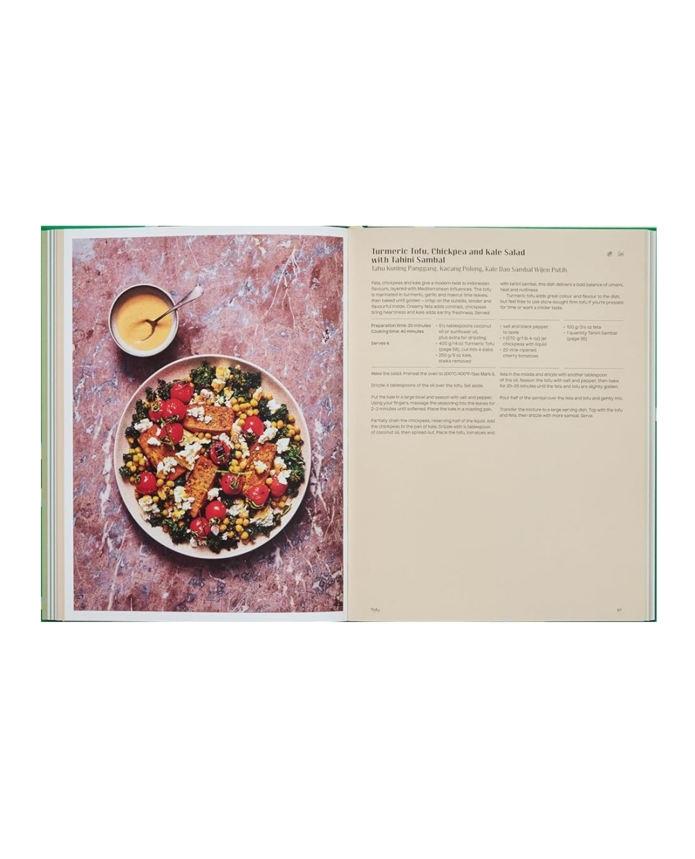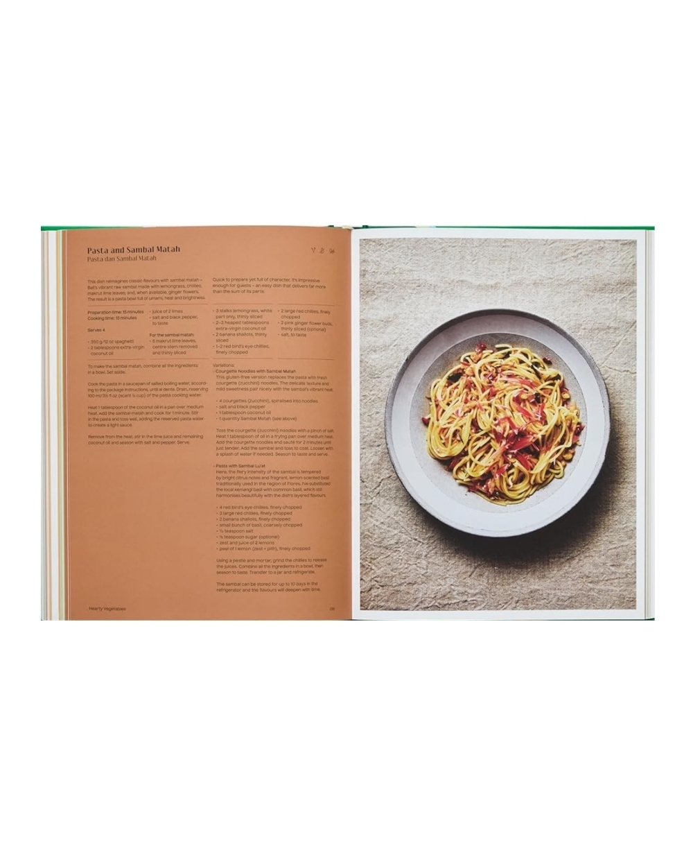 Az olyan fogások, mint a földimogyoró-szósszal kínált Gado-Gado, a Jackfruit Rendang vagy a Tempeh Laksa, az ízek gazdag ünnepét kínálják: a szerző szülővárosának, Sulawesi szigetének illatos fűszereitől egészen Bali kifinomult, ceremoniális fogásaiig és azon túl.