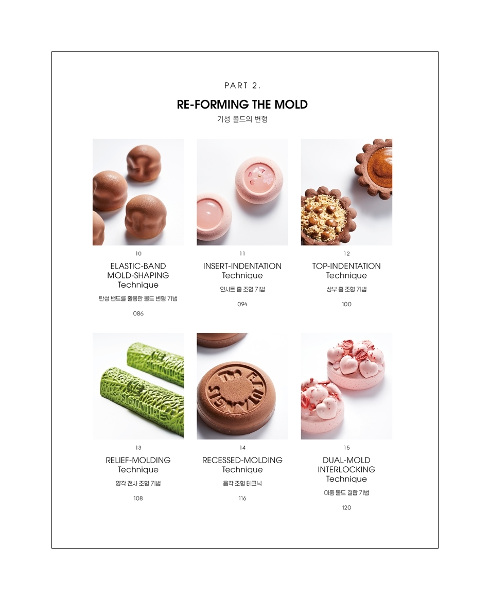 A The Signature Eric Kim tollából, alapmű minden cukrász számára, aki egyedi desszerteket szeretne alkotni. Az olyan technikák, mint az egyedi forma-készítés, a forma nélküli tortaépítés és a csokoládéfújás (chocolate spraying), olyan eszköztárat adnak, amelyekkel innovatívvá és személyessé tehető minden alkotás a modern cukrászatban.