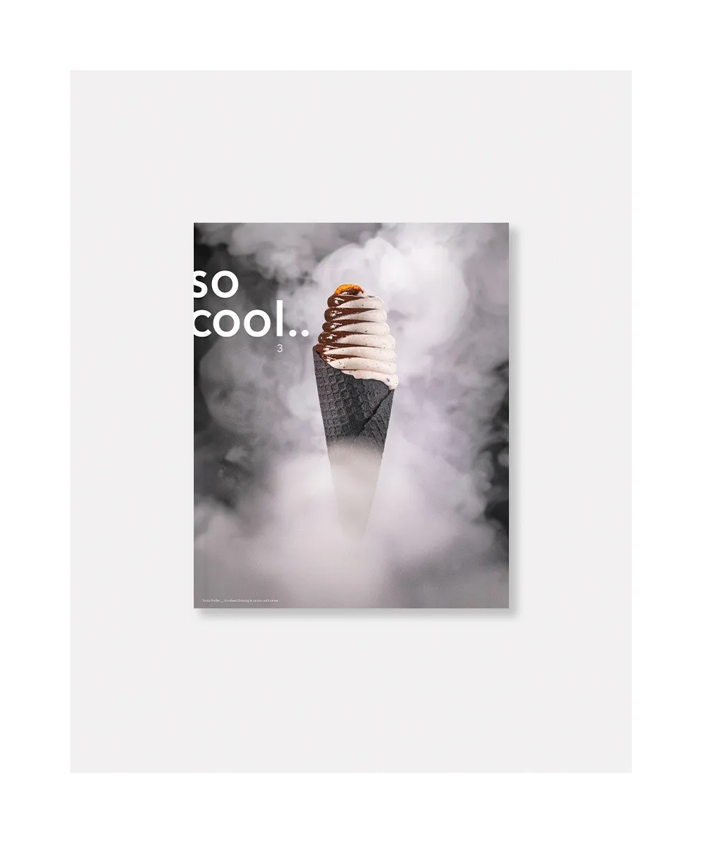 A so cool.. magazine no. 3 lapszámában a játékos dimenzió a kóstolás élményétől egészen a formátumig erőteljesen jelen van. Andrés Lara, Juan José Orueta, Yusuke Matsuhita, Sachiyo Takagi és Talia Profet olyan megközelítések markáns képviselői, amelyek különböző nézőpontokból gondolják újra a fagylaltot.