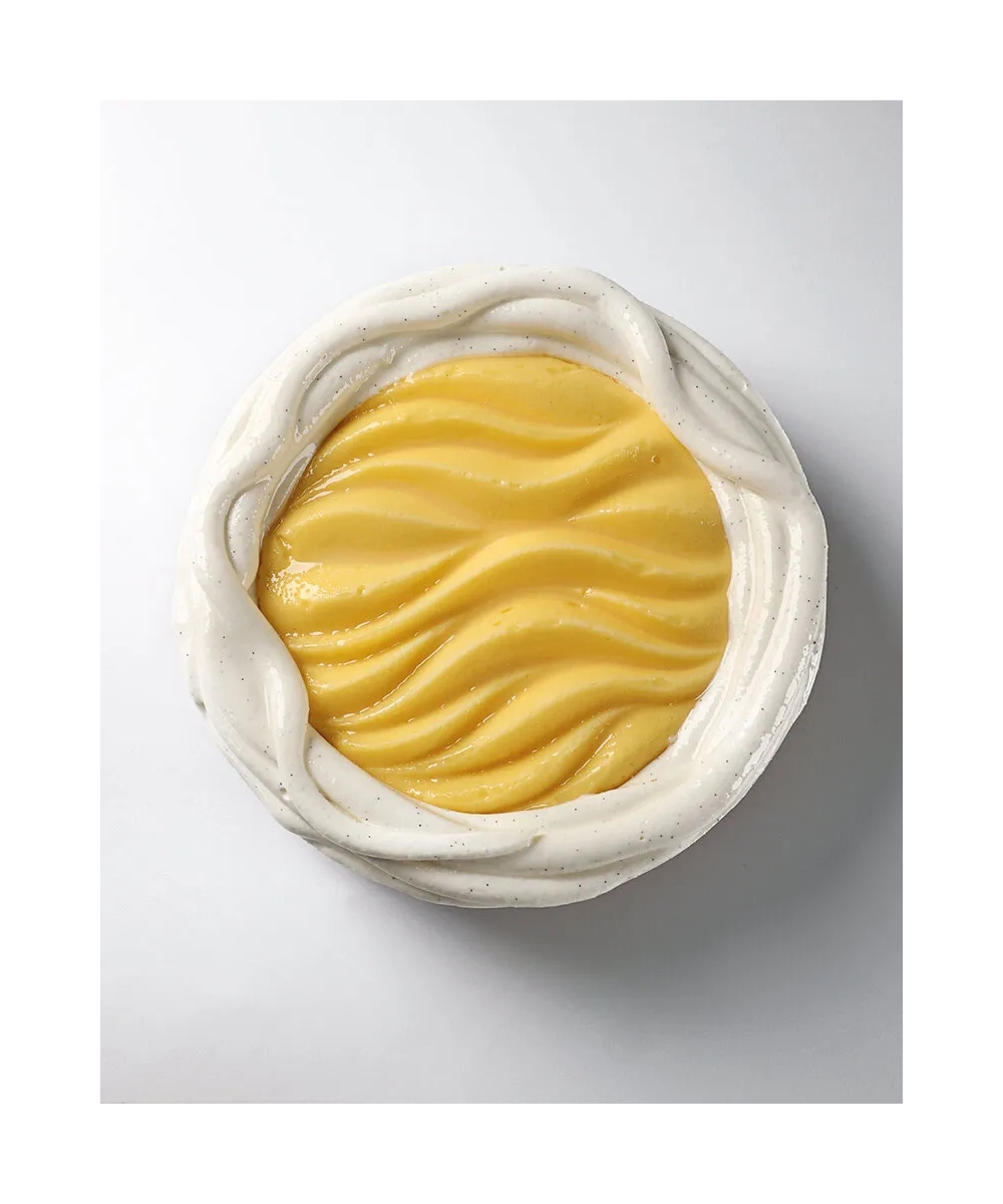 Andrés Lara Lemon Basil Ice Cream Tart desszertje ezt világosan példázza: a tölcsér újraértelmezése egy ropogós tartelette formájában jelenik meg, egy olyan nyitott formátumként, amely új értelmezésekre, felhasználásokra és kísérletezési módokra ad lehetőséget a fagylalt világában.